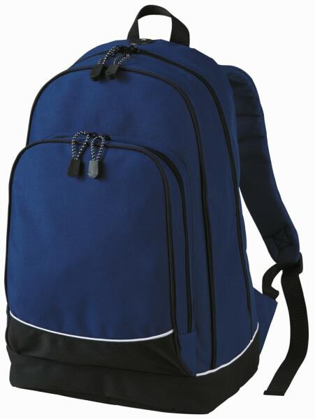 Diák hátizsák iskolai és szabadidős tevékenységekhez, tágas cipzáras zsebbel és szervezővel. Elöl egy kisebb cipzáras zsebbel rendelkezik. Fent van egy nagy lyuk, ahol átjuthat a fejhallgatón. Párnázott hát és hevederek, ahol beállíthatja a méretet. 100% poliészter szálból készül, nagy a súrlódás és kopásállóság. A vízszigetelést poliuretán impregnálás biztosítja.
