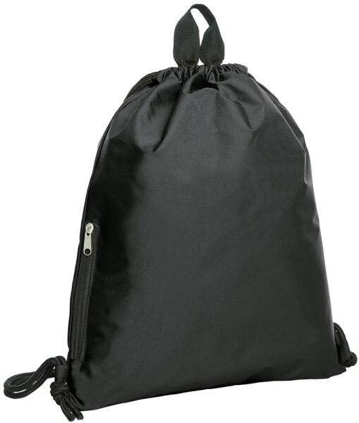 Nagy méretű, húzózsinórral összehúzható hátizsák, oldalsó cipzáras zsebekkel, hevederrel és húzózsinórral.