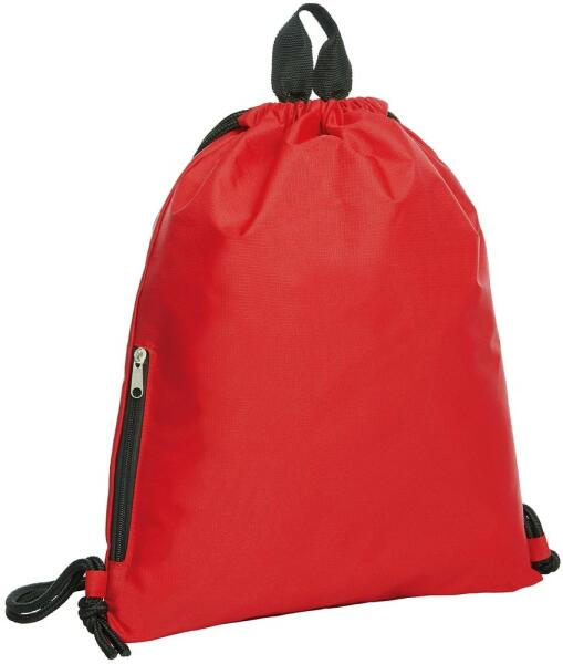 Nagy méretű, húzózsinórral összehúzható hátizsák, oldalsó cipzáras zsebekkel, hevederrel és húzózsinórral.