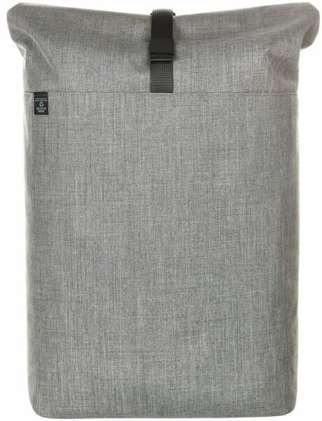 Stílusos városi roll up hátizsák notebook számára alkalmas méretben, mely újrahasznosított PET-palackokból származó fenntartható anyagokból készül. A hátizsák feltekeréssel és mágnessel záródik. A fő zseb tágas, párnázott laptop rekesszel rendelkezik, további cipzáras hátsó zseb. A párnázott hátnak és pántoknak köszönhetően kényelmesen hordható. A hátulján rejtett cipzáras zseb is található. A vállpántok állíthatók és gumihurokkal vannak kiegészítve pl. a napszemüveg számára. A hátizsáknak erős és tartós alja van, és a táskafülnek köszönhetően kézben is hordozható.