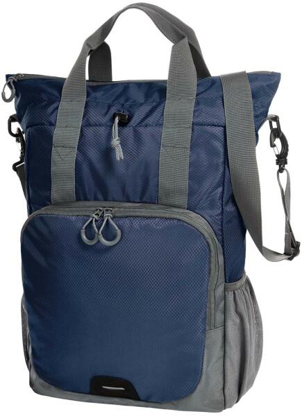 Praktikus többfunkciós táska 2 az 1 ben. Tároló rekesz egy cipzárral és húzózsinórral, belső zsebbel, elülső cipzáras zsebbel 2 csúszkával, oldalsó hálóval. A táska hátizsákként is viselhető, az állítható vállszíjaknak köszönhetően. A táskán található egy cserélhető vállszíj, állítható hosszúsággal és egy kis fényvisszaverő elejével.