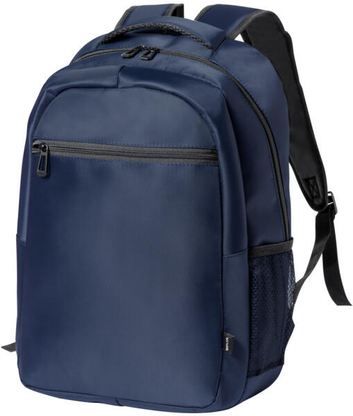 RNYLON hátizsák cipzáras rekeszekkel, hálós oldalzsebekkel, párnázott laptop (15") zsebbel, bőröndre rögzíthető pánttal, párnázott hát- és vállpánttal. 420D RNYLON poliészter, megkülönböztető RNYLON címkével.