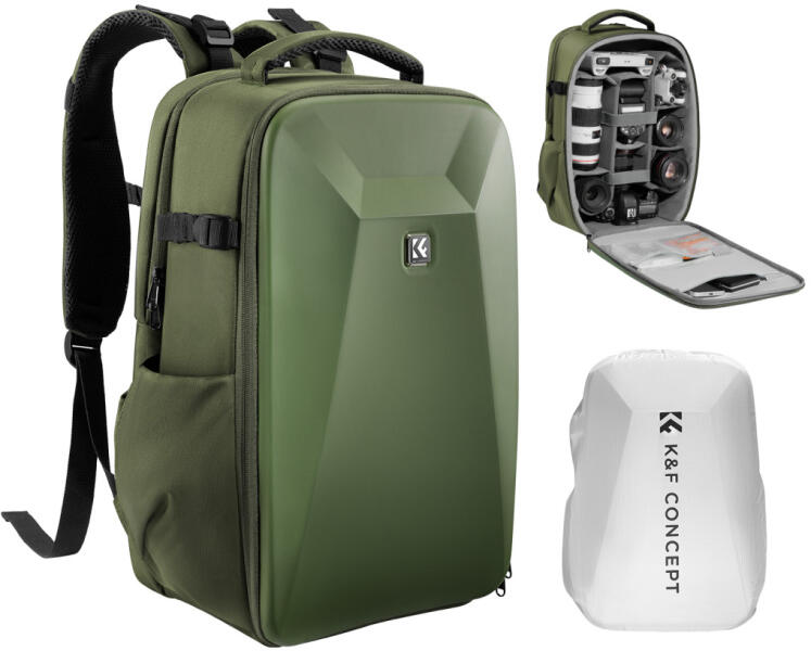 K&F Concept hardshell professzionális kamera hátizsák, 22L, 15.6 laptop zseb, zöld (KF-13-134V3)