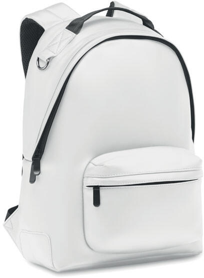 15 colos laptop hátizsák puha PU anyagból, párnázott háttal és megerősített aljjal. Elülső cipzáras zseb. Bélése 210D RPET.
