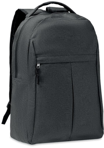 Hátizsák melírozott 600D RPET poliészterből, cipzáras külső zsebbel, az oldalán hálós zsebbel.