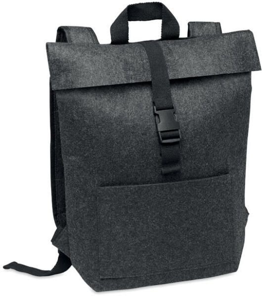 RPET filc hátitáska, pamut pántos záródással és cipzáras zsebbel az elején. Laptoptartó rekesszel.