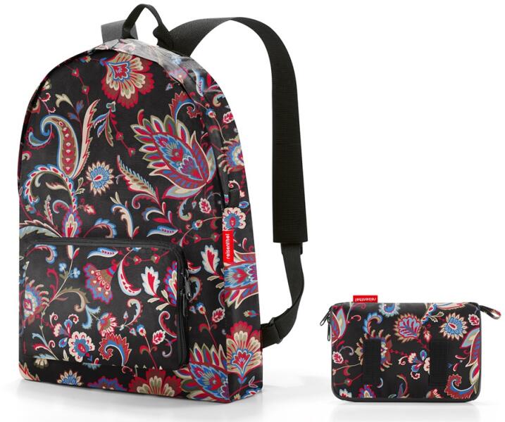 Reisenthel MINI-MAXI fekete, virág motívumos összecsukható hátizsák AP7064