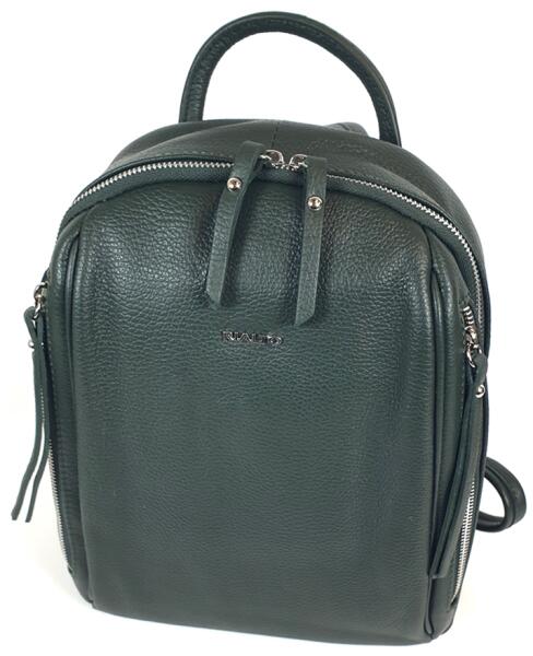 RIALTO sötétzöld fém zippes, oldalzsebes bőr divathátizsák RX405R/DO-06 - taskaweb