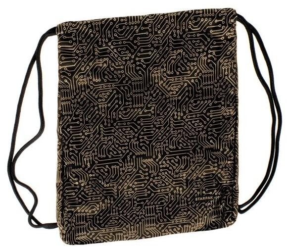 A fekete színű tornazsákot barnás árnyalatú áramkörök rajza teszi különlegessé. A minőségi Starpak tornazsák zsebbel - Nano iskolai és szabadidős használatra is kiváló választás a fiúknak, akár hátizsáknak is.