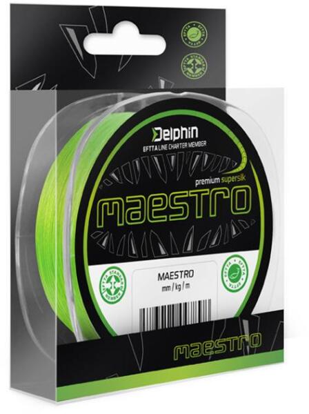 A Delphin MAESTRO egy prémium minõségű fonott zsinór sorozat, amely tökéletesen illeszkedik az Ön felszereléséhez. Ha süllõre, csukára, sügérre, vagy más ragadozóhalakra szeretne horgászni, akkor ez a megfelelõ választás. Nagy csomótűrõ tulajdonsága és kiváló színezete van, amely hosszú használat után sem fakul ki. Nem nyúlik, így minden kapást érezhet, és a megfelelõ pillanatban vághat be a halaknak. Ez a termék 8 szálas fonatból áll, ami nagy elõny – felülete rendkívül puha, így minimális ellenállással siklik át a gyűrűkön.