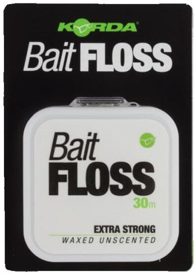 Csalirögzítő zsinór - Korda Bait floss, pop up és süllyedő bojlik rögzítésére használható, a fogselyemhez hasonló anyag. Lapos felületének köszönhetően még a keményebb lebegő bojlikba is jól beletapad. A megkötött csalit érdemes egy öngyújtó lángjával rögzíteni, így a zsinór szinte teljesen láthatatlan lesz.