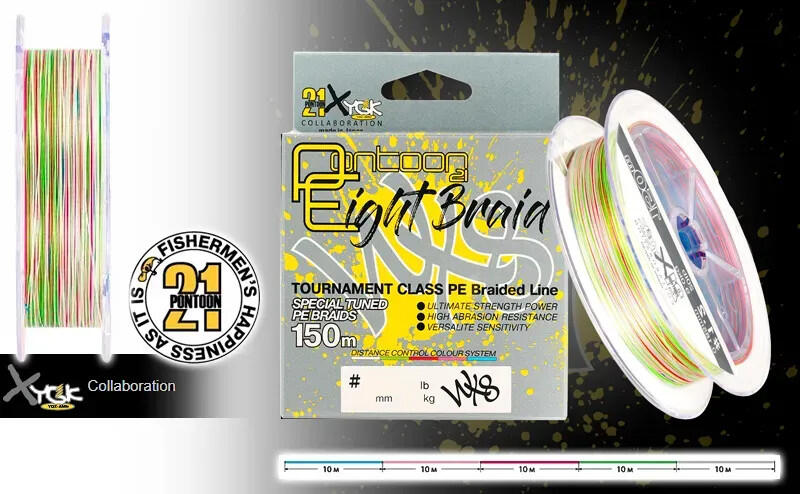 Az YGK és a PONTOON 21 közös kollaborációjából született egy tökéletes 8 szálas szövésű pergető zsinór sorozat. Az Eight Braid WX8 névvel forgalomba hozott új fonott zsinór Japánból származik, ami önmagában is már garancia a legjobb minőséghez. Ezt még tovább fokozza az YGK alapanyaga illetve gyártósora és így már prémium minőségről beszélhetünk. Ezeket az új szériájú zsinórokat a mechanikai sérülésekkel szembeni fokozott ellenállás jellemzi, miközben megőrzi az elképesztő érzékenységet. A PONTOON 21 Eight Braid WX8 sorozatot olyan technológiával gyártják, amely biztosítja a folyamat teljes automatizálását közvetlen emberi részvétel nélkül. Ez lehetővé tette a gyártási folyamat javítását: a molekulárisan orientált polietilén bizonyos módjából származó szálakat először befestik és védőkompozícióval vonják be, majd csak ezt követően szővik meg egy adott feszültségérték, vagyis feszesség mellett. A kézi munka hiánya és a kiváló minőségű precíz gyártás lehetővé tette a maximális pontosságot és a horgászzsinórok költségeinek csökkentését a hagyományos gyártási módszerekhez képest. A 8 szálas fonott zsinórokról közismert, hogy kerekebbek és érzékenyebbek, mint a 4 szálas fonott zsinórok. Ennek viszont mindig az volt a hátránya, hogy sérülékenyebbek is mint a 4 szálasok, ezért a 8 szálas fonott zsinórokat elsősorban a vízközti vagy vízfelszíni pergetéshez használták leginkább, vagy olyan helyeken ahol egyáltalán nincs vagy kevés az akadó. De az új fejlesztésű Eight Braid-nél, amin számos mechanikai és gyakorlati tesztet végeztek bebizonyosodott, hogy a sérülések tűrése sokkal magasabb lett, így a szakítószilárdság és a megbízhatóság is fokozódott. A felhasznált anyagok és az új gyártási ill. szövési technológiák hozzájárulnak a még nagyobb dobási távolságok eléréséhez, valamint a lefinomított Light és Ultra Light pergetés legapróbb részleteinek a kivitelezéséhez, ezzel megoldva a legkényesebb halak megfogását is. Így összefoglalva, az Eight Braid new Generation-nel kibővítheti horgászati ?lehetőségeit, mert ez a sorozat kiváló választássá vált a különféle Jig-es technikákkal való pergető horgászathoz is. Jellemzők: 8 szálas, bevonatos fonott Tournament Class – profi versenyhorgászoknak nagy szakítószilárdság magas kopásállóság nagy dobástávolság nyúlásmentes és érzékeny 150 méteres kiszerelés multicolor szín Pontoon 21 és YGK kollaboráció Japánban készült