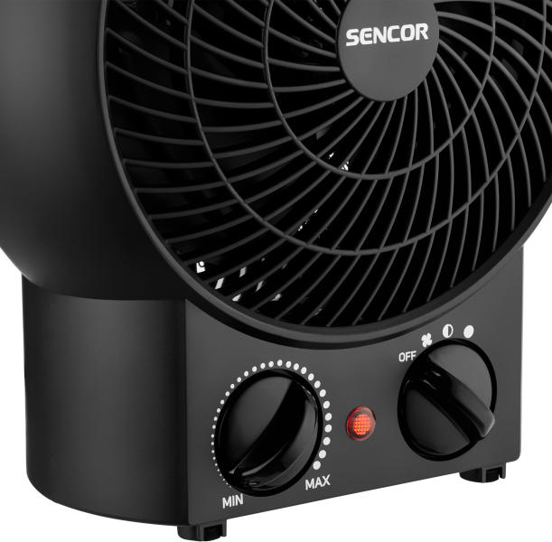 A Sencor SFH 7021BK praktikus és kompakt segédeszköz kisebb terek vagy irodák számára a hidegebb napokon, ahol relatív gyorsan tudja felmelegíteni a levegőt. A Sencor hőlevegős ventilátora modern kialakítással, akár 2000 W teljesítménnyel lett felszerelve alacsony, mindössze 55 dB (A) zajszint mellett. A kezelés nagyon egyszerű a bekapcsolásjelző lámpával gazdagított vezérlőgombnak köszönhetően.