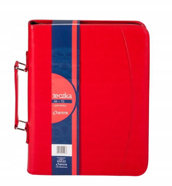 Antra A4-es cipzáras irattartó mappa fogantyúval, piros (711)