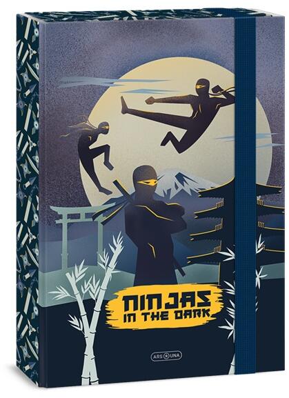 A vagány füzetbox mintáján nindzsák harcolnak az éjszakában. Az Ars Una kemény borítású füzetbox segítségével könnyedén tárolhatók a füzetek akár a táskában is. A füzettartó mappa segít rendezni a tanszereket és a gyűrődéstől is megóvja.