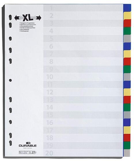 DURABLE Regiszter DURABLE műanyag A/4 maxi 20 színes + index fülek 675927 (675927)