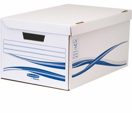 Fellowes Csapófedeles archiválókonténer, karton, nagy, 6 db Archiválódobozzal, FELLOWES "Bankers Box Basic", kék-fehér (IFW44605) - webpapir