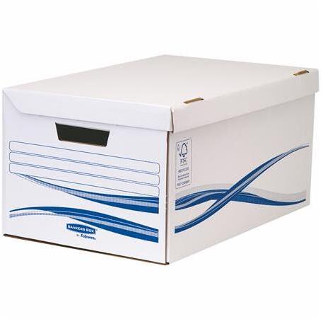 Fellowes Csapófedeles archiválókonténer, karton, nagy, FELLOWES "Bankers Box Basic", kék-fehér (IFW4460503) - tintasziget