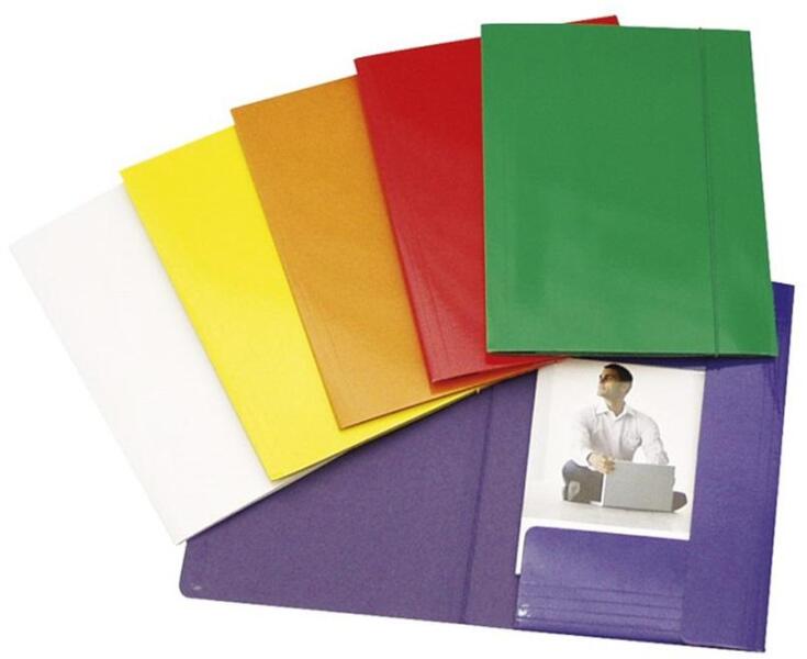 A4 (250x350 mm) méretű dokumentumok tárolására alkalmas, 3 belső pólyás gumis mappa. Karton alapanyaga 600gr/m2. Kiszerelés: 10db/csomag.