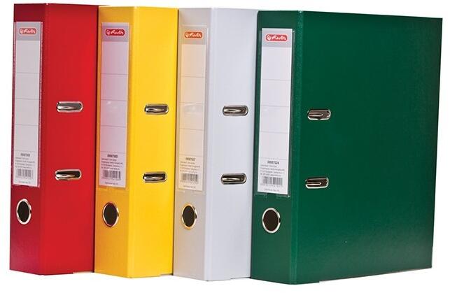 Kívül PP borítású, szürke színű, belül karton anyagból készült herlitz iratrendező, A4-es méretű dokumentumok tárolására, 7,5 cm-es gerincvastagsággal, kihúzólyukkal, cserélhető címkével, élvédővel, kapacitás: 480 lap.