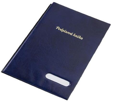 Aláírókönyv 14 elválasztólappal – a borítón címkével – rugalmas gerinc a kapacitás növelése érdekében – vastag kartonból – kemény, ftalátmentes műanyag borítás, . Méret: 241x350x22 mm, Csomagolási egység: 9 db