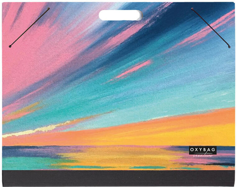 Rajzlaptartó mappa A/4 PICASSO Aurora. Laminált mappa A/4-es rajzok tárolásához, szállításához. Középen egy kivágás található a hordozásához. Gumival záródik. Méret: 320x260x5mm
