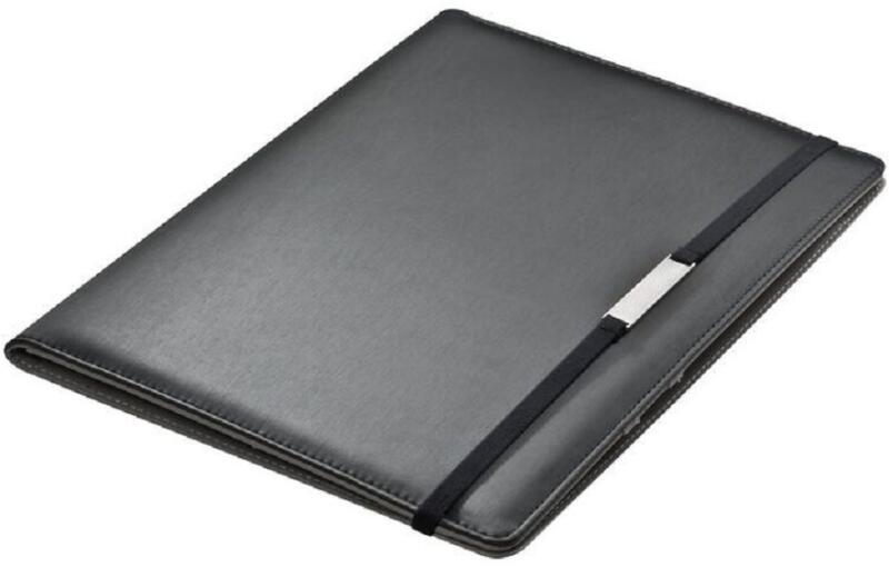 Elegáns A4 mappa, tablet tartóval, kívül mikroszálas anyagból, belülről PU borítással, vonalas 20 oldalas jegyzettömbbel, golyóstoll tartóval és 4 kártyatartó zsebbel. Méret: 24,7 x 33 x 2,1 cm. Feliratozását vállaljuk, emblémázási méret: 3,5 x 07 cm