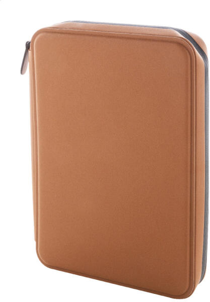 Cipzáras, luxus iratmappa újrahasznosított PU bőrből, 64 újrahasznosított papír anyagú, vonalas lapos jegyzetfüzettel. Több belső zsebbel kártyáknak és dokumentumoknak. A5 méret.