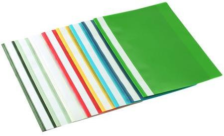 Műanyag anyagú, narancsos előlappal és színes, hajlékony hátlappal ellátott, cserélhető címke tárolós gyorsfűző mappa.
