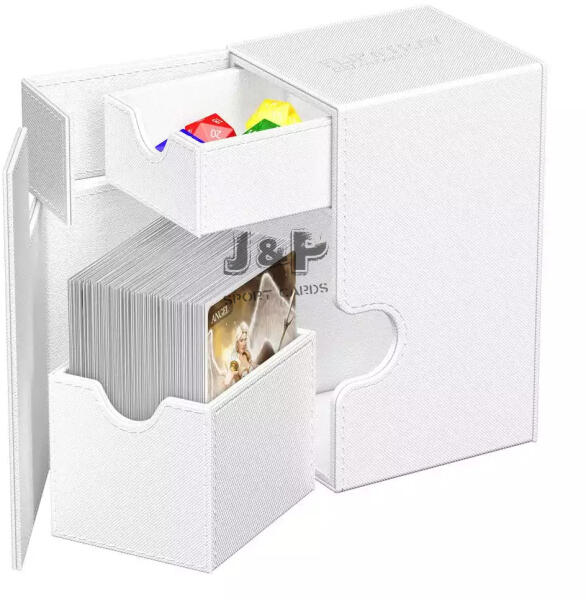 Az alapvető Ultimate Guard deck case: időtlen kialakítás erős mágneses zárással, kártya- és kockatartókkal a pakli biztonságos tárolására, valamint ellenálló, de sima Xenoskin felülettel. A 80 db dupla sleeveben vagy 100 db szimplán bugyizott kártya tárolására alkalmas normál méretben. *a kártyákat és dobókockákat nem tartalmazza! Gyártó termék oldala: Ultimate Guard Flip'n'Tray Deck Case 80+ Standard Size XenoSkin White