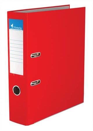 Termék neve: Iratrendező, 75mm, piros Gyűjtőcsomagolás: raklap=600db, karton=25db Márka: VICTORIA Csomagolási egység: db Leírás: -> kiváló minőség, mindennapos használatra -> A4 méretű dokumentumok tárolására -> élvédő fémsín nélkül, a bútor megóvása érdekében -> kívül PVC borítás, belül karton -> 7 színváltozat -> cserélhető címke -> erősített kihúzólyuk