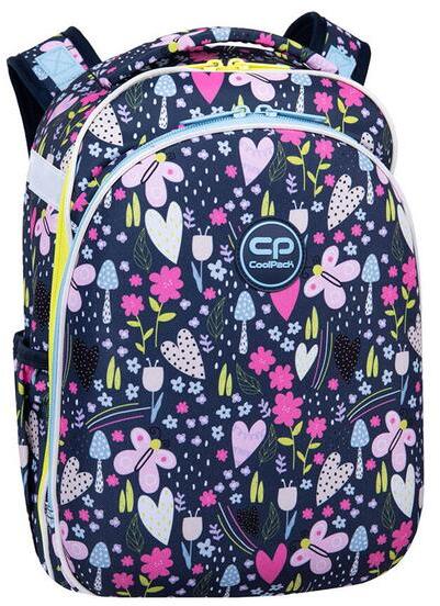 A   Coolpack - Turtle iskolatáska, hátizsák - 2 rekeszes - In the garden (F015831) a kisiskolás korosztály  ruhatárának div atos kiegészítője.  A hátizsák 2  különböző méretű, cipzáras rekesszel rendelkezik .  Két nagy rekeszében könnyedén elfér az A4 -es formátum, ami az iskolai tankönyvek hagyományos mérete.  A hátizsák oldalán két zseb található, amelyekben szabadon és biztonságosan tárolhatod a kulacs odat.  Sőt, a hátizsák számos tulajdonsággal rendelkezik, amelyek elősegítik a praktikus használatot.  A párnázott vállpántok állítható hosszúságúak és a tetején lévő megerősített fogantyúval kézben is kényelmesen vihető, valamint az EVA habból készült ergonomikus háttámla kényelmessé teszi a hátizsákot a gyermek számára.  A mellkaspánt   t ehermentesíti a gerincet és javítja a testtartást. Vállpántját  fényvisszaverő elemek díszítik a gyermekek biztonságának érdekében.  A hátizsákban több kisebb  rendszerező is található az apró kiegészítők számára. A  Coolpack - Turtle iskolatáska, hátizsák - 2 rekeszes - In the garden (F015831) az első osztályosok gyermekek számára nagyon vonzó. A táska anyaga vízálló .