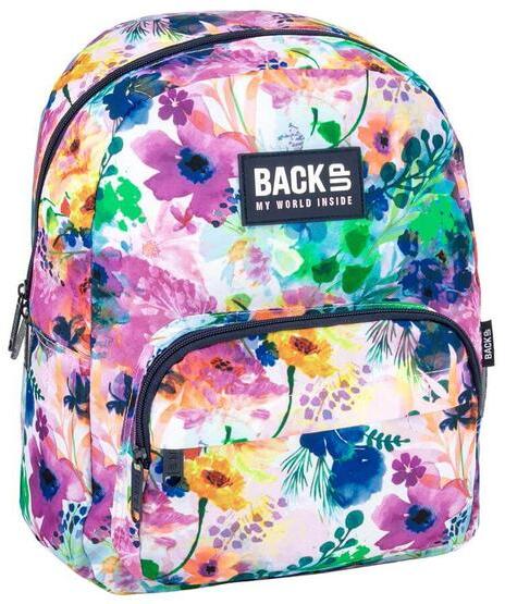 A BackUp hátizsák - 1 rekeszes - Spring (PLB7F10)  letisztult virágos táska a nagyobb korosztály ruhatárának kiegészítője. A hátizsák egy nagy rekesszel, egy kisebb méretű, cipzáras zsebbel és két kis hálós oldalzsebbel rendelkezik. A légáteresztő hálóval borított, szivacsos vállpánt állítható,  a rajta lévő mellkaspánt tal pedig még kényelmesebbé teszi viselését. A hátizsák anyaga vízálló, a   tetején lévő megerősített fogantyúval kézben is vihető. A BackUp hátizsák  remek választás kiránduláshoz és könnyebb iskolai napokra is.