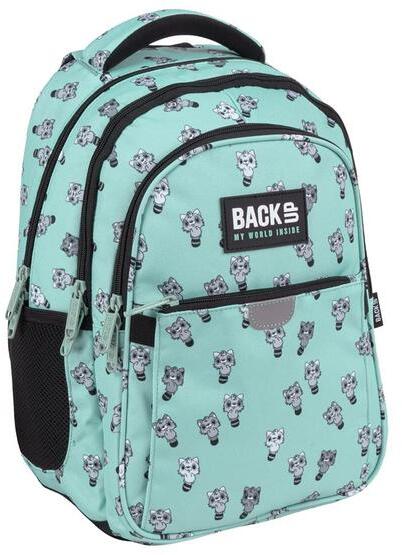 A mosómacis  BackUp hátizsák a kisiskolás lányok ruhájának divatos kiegészítője. A hátizsák 3 különböző méretű cipzáras rekesszel, elöl plusz 1 kisebb cipzáras zsebbel és 2 hálós oldalzseb bel rendelkezik. Hátoldala merevített, ergonomikus kialakítású, légáteresztő hálós szivaccsal. Állítható vállpánt ja szivacsos, légáteresztő hálós fedőréteggel, diszkrét fényvisszaverők kel ellátott. A belső rekeszekben több kisebb rendszerező zseb található, amikben elfér például a mobil telefon és töltő, fülhallgató, pendrive, kulcs. A tetején lévő megerősített fogantyúval kézben is vihető, a másik fogantyúval felakasztható. A megerősített anyagnak köszönhetően az alsó része erős, strapabíró . A szabvány A/4-es méretű tankkönyv elfér benne, az A/4-es méretű gumis mappa viszont nem. A világos kék színű  BackUp hátizsák  sok-sok vidám mosómedvével  cuki és csajos, tökéletes választás a könnyebb iskolai napokra vagy kirándulásokra!