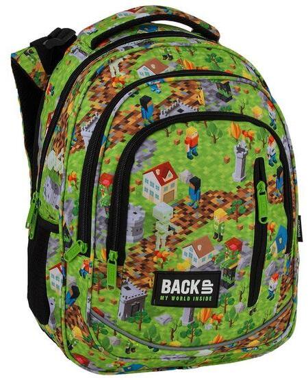 BackUp Pixel game hátizsák a gyerekek  ruhájának divatos kiegészítője. A hátizsák 3 különböző méretű cipzáras rekesszel, elöl plusz 1 kisebb cipzáras zsebbel és 2 hálós oldalzseb bel rendelkezik. Hátoldala merevített, ergonomikus kialakítású, légáteresztő hálós szivaccsal. Állítható vállpánt ja szivacsos, légáteresztő hálós fedőréteggel, diszkrét fényvisszaverők kel ellátott. A belső rekeszekben több kisebb rendszerező zseb található, amikben elfér például a mobil telefon és töltő, fülhallgató, pendrive, kulcs. A tetején lévő megerősített fogantyúval kézben is vihető, a másik fogantyúval felakasztható. A megerősített anyagnak köszönhetően az alsó része erős, strapabíró . A szabvány A/4-es méretű tankkönyv elfér benne, az A/4-es méretű gumis mappa viszont nem. A  BackUp hátizsák  tökéletes választás a könnyebb iskolai napokra vagy kirándulásokra!