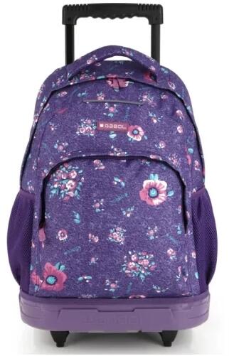 Gabol gurulós iskolatáska, melyet a húzókar segítségével magunk mellett húzhatunk, de háton is hordható. Az iskolatáska egy rekeszes, elöl cipzáras zsebbel, oldalt pedig egy-egy hálós kulacs- és esernyőtartóval ellátott. A cipzáraknál és a táska egész anyagán víztaszító réteg van, így véd az eső ellen. Elöl fényvisszaverővel, állítható párnázott vállpánttal, kézifogóval is ellátott.