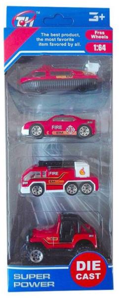 A járművek szerelmeseinek való 4 darabos tűzoltó kisautó készlet! Az autók 1:60-64-es méretarányú fém kisautók.