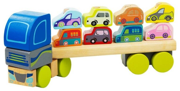Ez az autószállító kamion 8 darab színes autót tud elvinni. Mivel emeletes, négy autó fent, négy pedig lent állhat. A kis járművek biztonságosan rögzíthetőek a rakodótérbe, mivel egy natúr rúdra kell felhelyezni őket. A színes autók jól elférnek a kamion hátuljában, nem gurulnak le, hiszen védve vannak. Mindegyik darab erős, tömör fából készült. Az autókkal, kocsikkal való játékot elsősorban a fiúk kedvelik. A járművek tologatása során fejlődik a finommotorika és a szem-kéz koordináció. A...