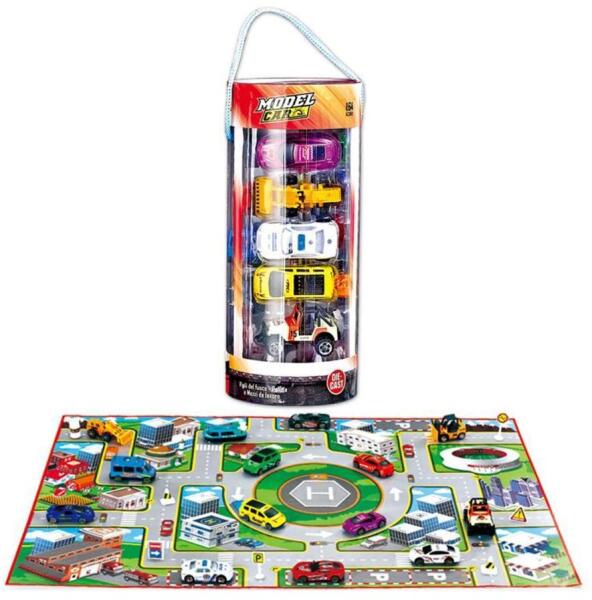 Fém autó klt. , 14 db + terep, 11x28 cm pvc dob