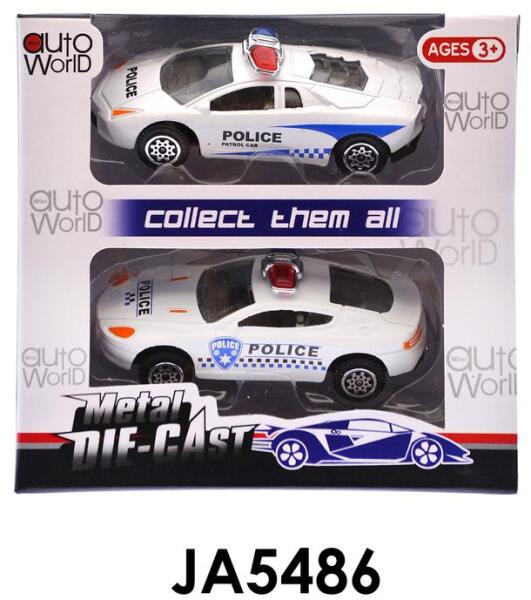 Fém rendõrautó, 2 db, 4 féle, 13x12 cm dob