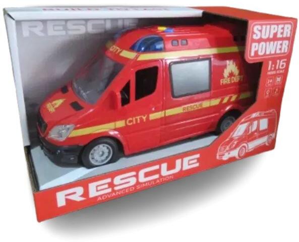 A tűzoltóautó valósághű részletekkel rendelkezik: erős piros szín, a tetőn kék villogó fények és autentikus hanghatások, amelyek izgalmas kalandokat biztosítanak a kicsik számára. Az ajtók nyithatók, így még élethűbbé válik a játék. A játékautó anyaga tartós műanyag, ami biztosítja a hosszú élettartamot és a biztonságos játékot. Az autó könnyedén gurul. A termék jellemzői:1:16 méretarányFény- és hanghatásokLendkerekes meghajtásTartós műanyagból készültNyitható ajtókCsomagolás mérete: 28 x 12.6 x 16.5 cmEz a tűzoltóautó tökéletes választás minden kis hős számára, aki szeretne belekóstolni a tűzoltók izgalmas világába!