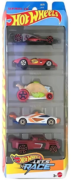 A készlet tartalmaz egy 5 darabos, gyűjtők számára válogatott, 1:64 méretarányú Hot Wheels Let's Race kisautót.