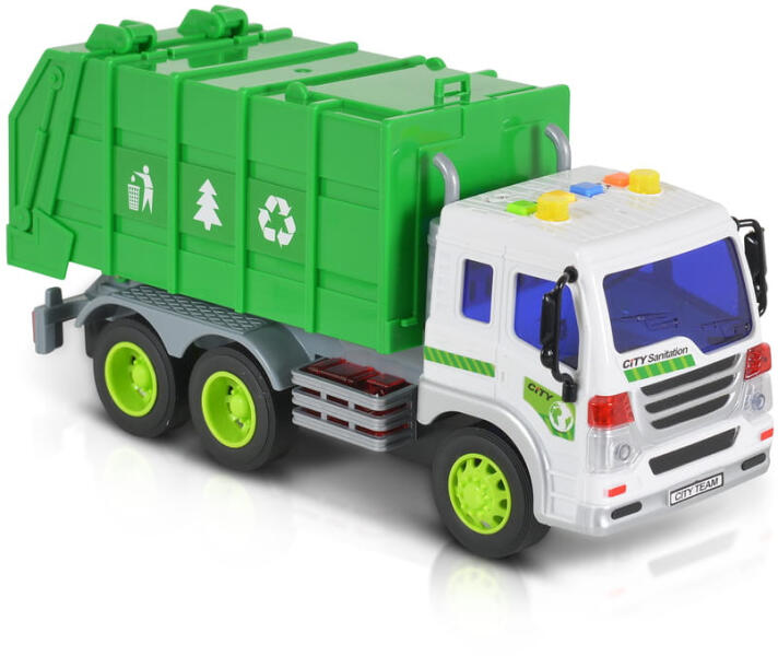 Moni Toys Kisautó kukásautó 1:16 emelhető platós zöld