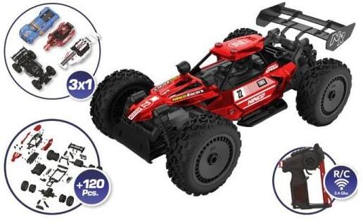 Jellemzők:A NINCORACERS Stream 3 az 1-ben távirányítós autó építő készlet. Tanítsa meg a gyerekeknek játékos formában, hogyan működik a mechanika egy autóval, amelyet több mint 120 alkatrészből maguk állíthatnak össze. Az építés egyszerű, és nincs szükség szerszámra. Három karosszéria közül lehet választani. A működéshez öt AA méretű ceruzaelem szükséges (3 db az autóba, 2 db a távirányítóba) (az elemek nem tartozékai a csomagnak). A távirányító megbízhatóan és zavarás nélkül működik a 2,4 GHz-es sávban. Az autó rugós lengéscsillapítókkal, hátsókerék-hajtással 2WD és puha gumiból készült gumiabroncsokkal rendelkezik. A sebesség akár 8 km/h.