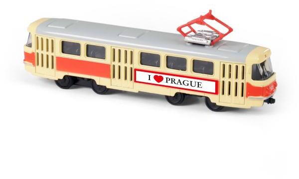 Az eredeti, piros-fehér kivitelű fém villamos a megfelelő szállítóeszköz-kollekcióhoz. Ez a prágai motívumú retro darab ideális ajándék minden fiatal és idős férfi számára. a villamos hátrafelé halad hossza 16 cm 1:87 méretarányban életkor: 3+