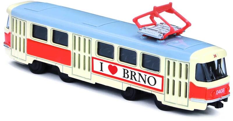 Az eredeti, piros-fehér fém villamos minden járműgyűjteményhez megfelelő. A villamos hátramenetben közlekedik, hossza 16 cm. Ez az I Love BRNO matricával ellátott retro darab ideális ajándék e híres villamosok minden kicsi és nagy szerelmese számára.