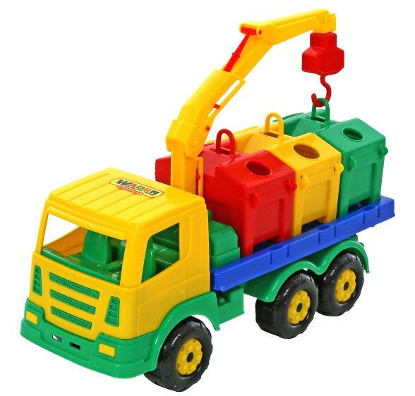 A szelektív konténeres autó játékos módon ismertetheti meg a gyerekekkel a környezettudatosság alapjait. A három különböző szelektív kuka lehetőséget adhat a különféle hulladékfajták megkülönböztetésére, miközben a daruval való emelés és pakolás élményszerű játékot kínál. A strapabíró műanyag kialakításnak köszönhetően a jármű tartós lehet beltéri és kültéri használat során is. A 6 kerekű stabil szerkezet könnyen mozgatható, így a gyerekek egyszerűen játszhatnak vele bármilyen felületen.
