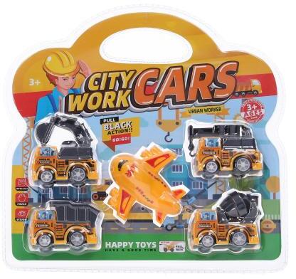 Építőipari gépek 5 db. Méret 5,5 cm. Visszahúzós.