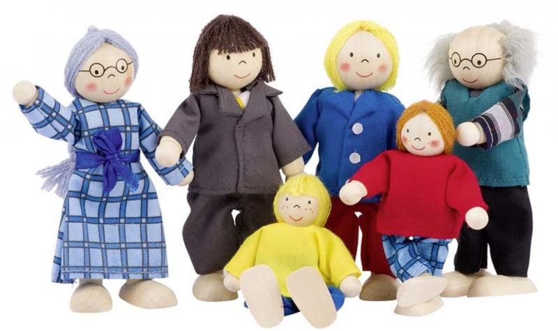 Hajlítható végtagú Goki fa babacsalád babaházhoz. A német Goki fajáték márka egyaránt kedvelt mind a gyerekek, mind a gyerekekkel foglalkozó óvodák és egyéb intézmények körében, a Goki játékok kidolgozottsága, színvilága és minősége saját véleményünk szerint is kiemelkedik a gyerekjátékok és fajátékok között.