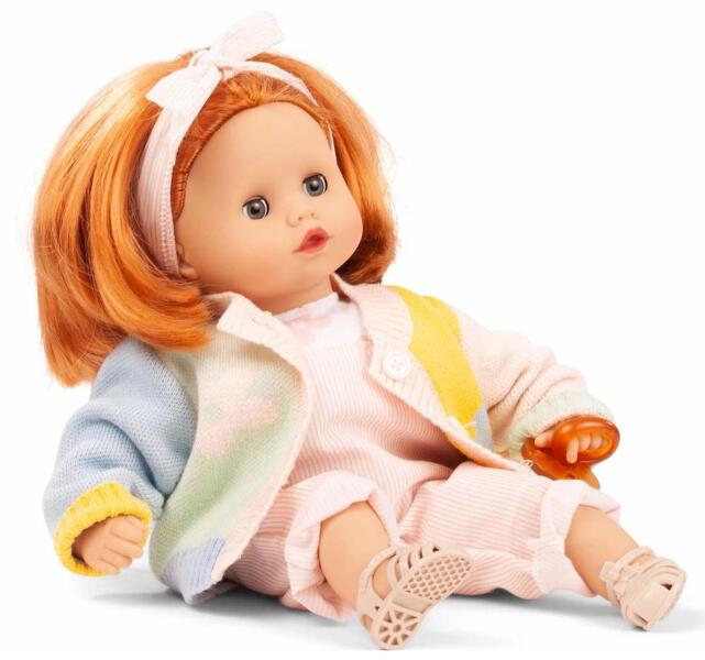 A GÖTZ muffinbaba teste puha, bolyhos vattaszerű pamutanyaggal és granulátummal töltött, ami miatt még inkább ölelnivaló. 8 részből álló szett: Götz Muffin baba, kertésznadrág,  póló, kötött kardigán, hajpánt, szandál, cumi
